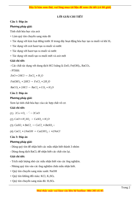 + Quỳ tím chuyển sang màu đỏ: H2SO4 Trang 2