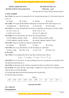 Đề thi cuối kì 1 Hóa học 9 trường THCS Huyên Kế Sách