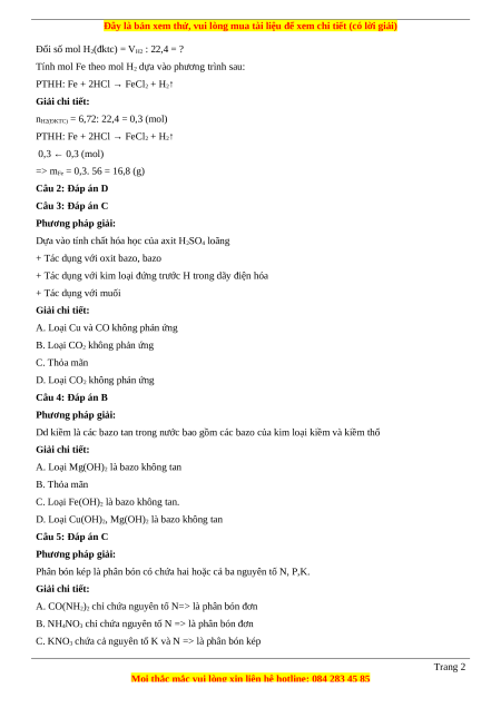 + Tác dụng với kim loại đứng trước H trong dãy điện hóa + Tác dụng với muối Giải chi tiết: