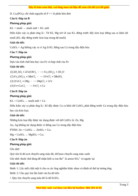 Câu 9: Đáp án Phương pháp giải: Ghi nhớ:
