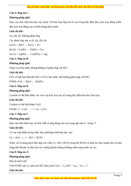 Câu 5 (TH): Oxit nào sau đây có thể làm khô khí clorua (khí HCl)? A. CuO. B. P2O5. C. CaO. D. CO.
