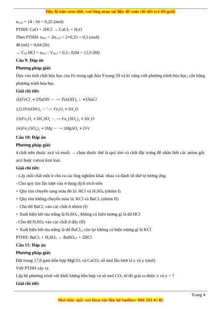 Câu 8: Đáp án A Phương pháp giải: Đổi số mol CaO
