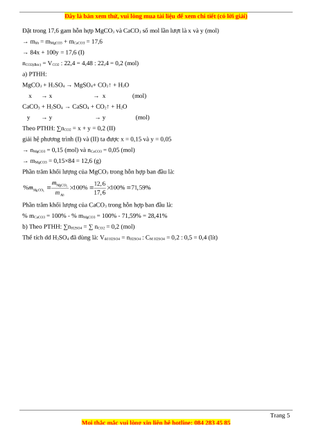 Câu 11 (VD): Hòa tan 17,6 gam hỗn hợp gồm MgCO3 và CaCO3 vào dung dịch axit sunfuric (H2SO4)
