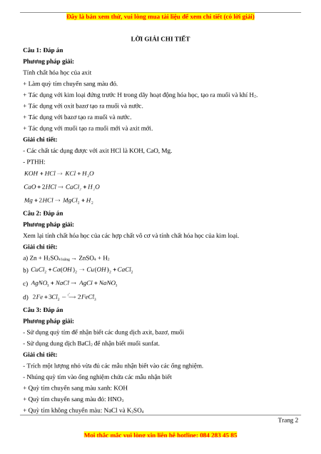 + Quỳ tím không chuyển màu: NaCl và K2SO4 Trang 2