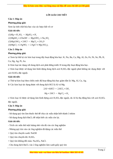 Câu 2 (TH): Cho các kim loại sau: Mg, Cu, Al, Ag