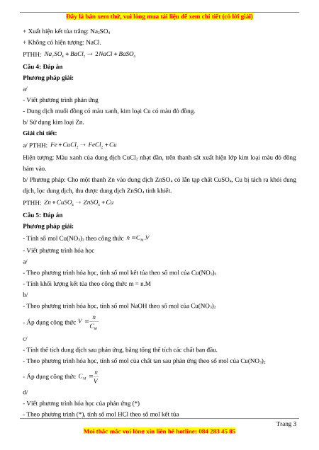 Câu 5 (VD): Cho 200 ml dung dịch Cu(NO3)2 1,5M tác dụng hoàn toàn với dung dịch NaOH 2M