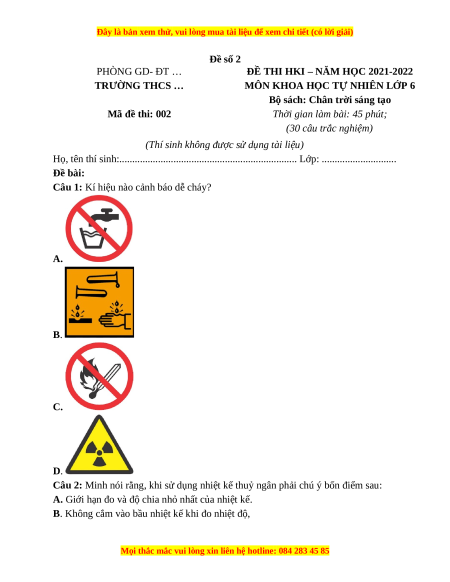 - Tailieugiaovien.com.vn giới thiệu bộ 3 đề thi cuối kì 1 môn Khoa học tự nhiên 6 Chân trời sáng tạo mới nhất nhằm giúp Giáo viên có thêm tài liệu tham khảo ra đề thi Khoa học tự nhiên lớp 6.