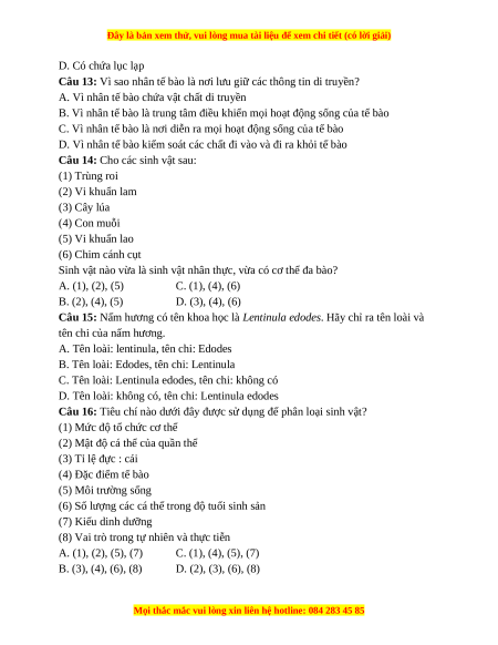 Đây là bản xem thử, vui lòng mua tài liệu để xem chi tiết (có lời giải)