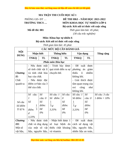 - Tailieugiaovien.com.vn giới thiệu bộ 3 đề thi cuối kì 1 môn Khoa học tự nhiên 6 Kết nối tri thức mới nhất năm 2023 nhằm giúp Giáo viên có thêm tài liệu tham khảo ra đề thi Khoa học tự nhiên lớp 6.