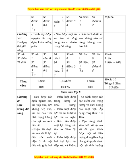 dựng khóa lưỡng dụng của vi khuẩn dụng kháng sinh thế giới phân trong đời sống bừa bãi sống Số câu Số câu: Số Số Số câu: Số câu: Số câu: Số câu: Số điểm 1 câu: 0 câu:1 0 1 0 3 câu Tỉ lệ % Số Số Số Số Số điểm: Số 1 điểm = 10% điểm: điểm: điểm: 0 điểm: 0 0 đ điểm: đ đ đ đ đ Số câu:10 Tổng 1 điểm 1,33 điểm 1 điểm Tổng số điểm: cộng 10% 13,33% 10% 3,3 điểm