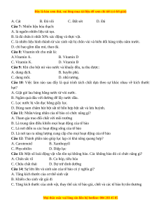 Câu 8: Vitamin tốt cho mắt là: A.Vitamin A. B. Vitamin D C. Vitamin K. D. Vitamin B