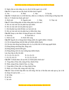 Câu 19: Nguyên tắc sử dụng thuốc kháng sinhh cho người nhiễm vi khuẩn: