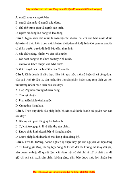 Câu 9. Trên thị trường, doanh nghiệp Q nhận thấy giá của nguyên vật liệu đang