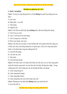 Đề kiểm tra giữa học kì 1 số 1 I. TRẮC NGHIỆM