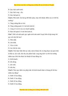 Câu 7. Đối với một quốc gia, ngân sách nhà nước là quỹ tiền tệ tập trung với quy mô như thế nào? A. Nhỏ nhất. B. Lớn nhất. C. Vừa và nhỏ. D. Lúc lớn lúc nhỏ.