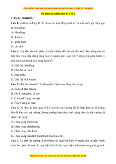 Đề kiểm tra giữa học kì 1 số 2 I. TRẮC NGHIỆM