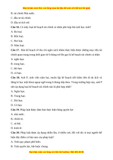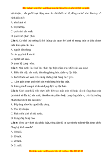 Câu 9. Theo quy định của pháp luật, công dân đủ từ bao nhiêu tuổi trở lên được phép đăng ký kinh doanh? A. 18 tuổi. B. 19 tuổi. C. 20 tuổi. D. 21 tuổi.