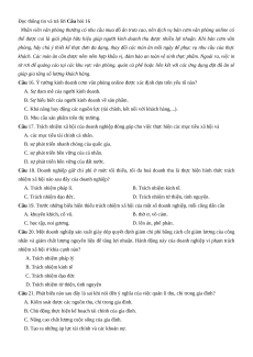 Câu 14. Nội dung cơ bản của kế hoạch kinh doanh không bao gồm A. cơ hội kinh doanh. B. ý tưởng kinh doanh. C. mục tiêu kinh doanh. D. chiến lược kinh doanh.