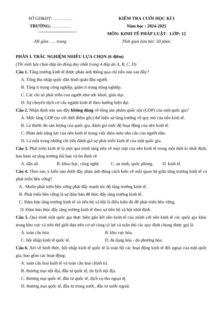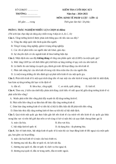 MÔN: KINH TẾ PHÁP LUẬT - LỚP: 12 Đề gồm ….. trang