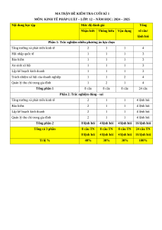 MÔN: KINH TẾ PHÁP LUẬT – LỚP: 12 – NĂM HỌC: 2024 – 2025 Nội dung học tập Mức độ đánh giá Tổng Nhận biết