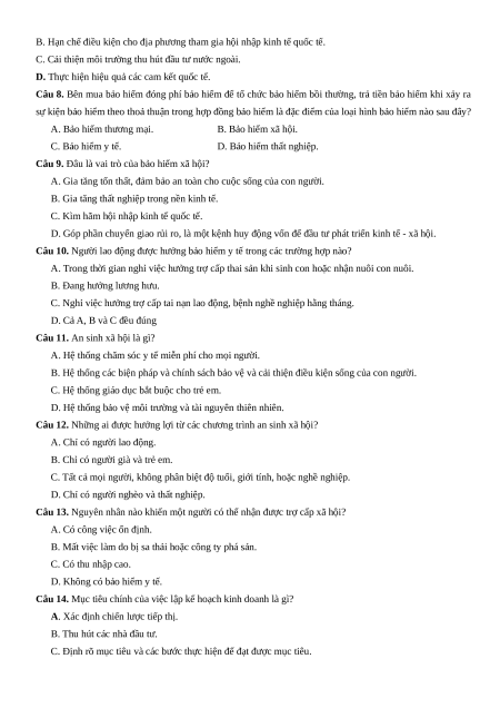 A. Bảo hiểm thương mại. B. Bảo hiểm xã hội. C. Bảo hiểm y tế.