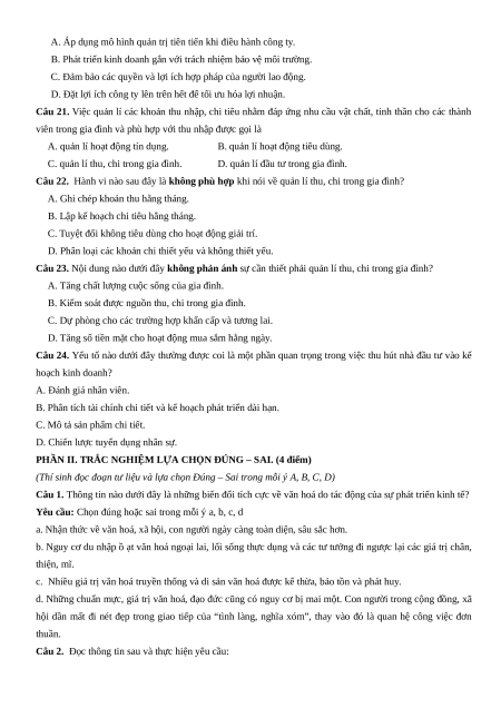 Quản lý thu chi trong gia đình 1 2 1 4 Tổng phần 1 8 câu 8 câu 8 câu 24 câu