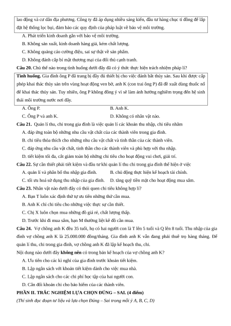 Quản lý thu chi trong gia đình 1 2 1 4 Tổng phần 1 8 câu 8 câu 8 câu 24 câu