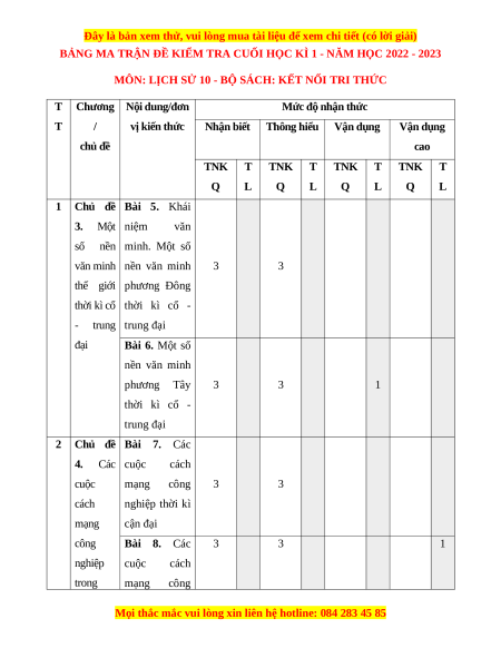 MÔN: LỊCH SỬ 10 - BỘ SÁCH: KẾT NỐI TRI THỨC T