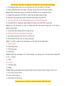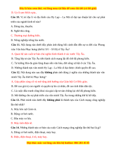 Câu 9. Một trong những nhà soạn kịch kiệt xuất của thời kì Phục hưng ở Tây Âu là A. Ni-cô-lai Cô-péc-ních. B. Lê-ô-na đờ Vanh-xi. C. Phơ-răng-xoa Ra-bơ-le.