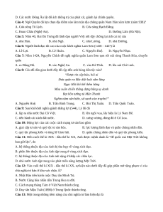 Câu 16: Công cuộc cải cách ở Xiêm được tiến hành chủ yếu dưới thời kì trị vì của A. vua Ra-ma I và Ra-ma II. B. vua Ra-ma II và Ra-ma III. C. vua Ra-ma III và Ra-ma IV. D. vua Ra-ma IV và Ra-ma V.