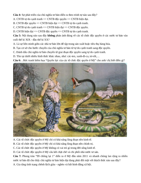 Câu 5: Nội dung nào sau đây không phản ánh đúng về các tổ chức độc quyền ở các nước tư bản vào