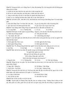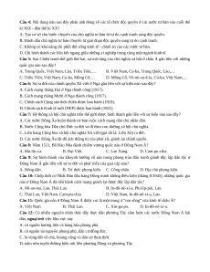 Câu 14: Cuối thế kỉ XIX - đầu thế kỉ XX, mâu thuẫn bao trùm trong xã hội Đông Nam Á là mâu thuẫn