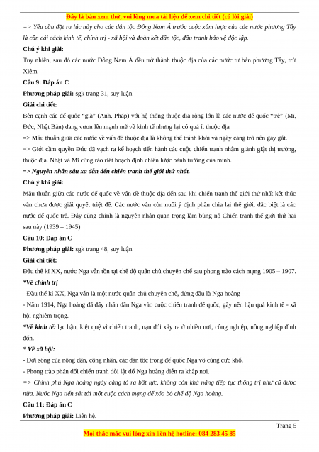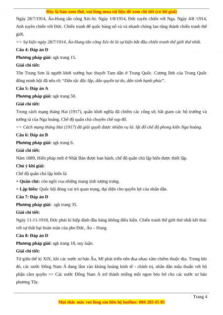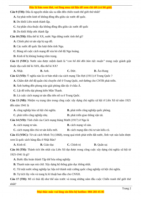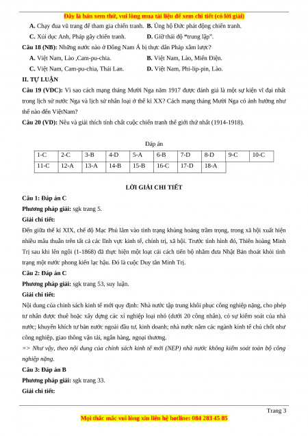 Câu 20 (VD): Nêu và giải thích tính chất cuộc chiến tranh thế giới thứ nhất (1914-1918). Đáp án 1-C 2-C 3-B 4-D 5-A 6-B 7-D 8-D 9-C 10-C 11-C 12-A 13-A 14-B 15-B 16-C 17-D 18-A LỜI GIẢI CHI TIẾT