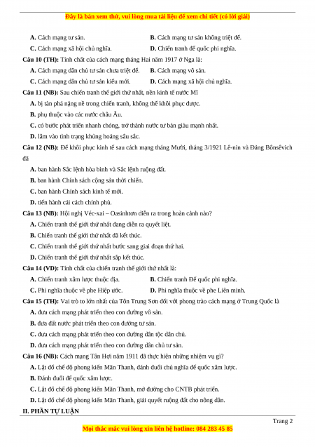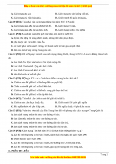 D. Lật đổ chế độ phong kiến Mãn Thanh, giải quyết ruộng đất cho nông dân. II. PHẦN TỰ LUẬN Trang 2