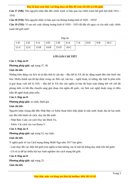 Câu 19 (TH): Vì sao nói cuộc khủng hoảng kinh tế 1929 – 1933 đã dẫn tới nguy cơ của một cuộc chiến tranh thế giới mới? Đáp án 1-D 2-D 3-A 4-D 5-B 6-A 7-A 8-D 9-B 10-C 11-C 12-C 13-B 14-B 15-D 16-C LỜI GIẢI CHI TIẾT