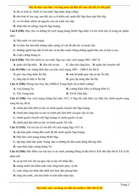 Câu 7 (NB): Tình hình nước Nga khi tham gia Chiến tranh thế giới thứ nhất là Trang 1
