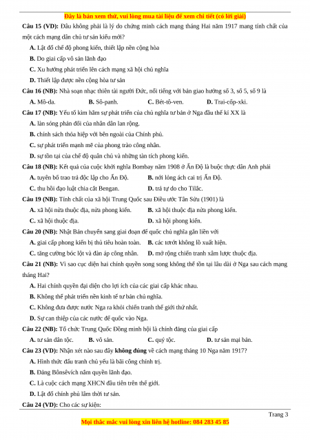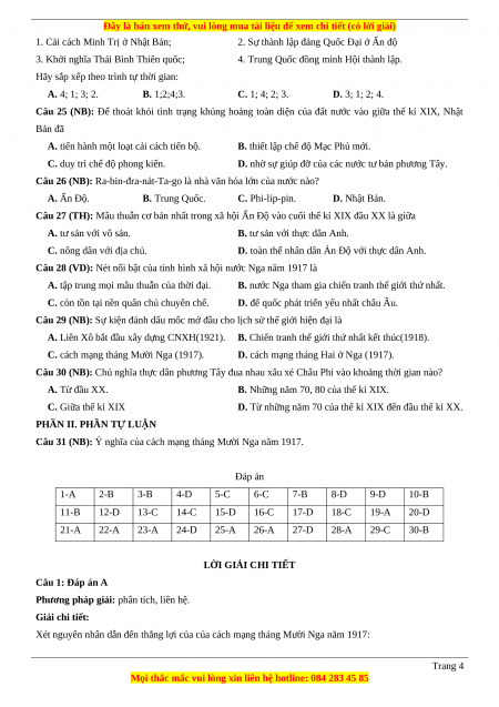 Câu 31 (NB): Ý nghĩa của cách mạng tháng Mười Nga năm 1917. Đáp án 1-A 2-B 3-B 4-D 5-C 6-C 7-B 8-D 9-D 10-B 11-B 12-D 13-C 14-C 15-D 16-C 17-D 18-C 19-A 20-D 21-A 22-A 23-A 24-D 25-A 26-A 27-D 28-A 29-C 30-B LỜI GIẢI CHI TIẾT