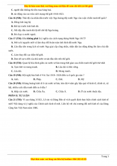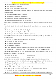 Câu 12 (NB): Những nước giành được nhiều thành quả và quyền lợi nhất trong hội nghị Véc-Xai gồm A. Anh, Pháp Mỹ B. Pháp, Đức, Nga.