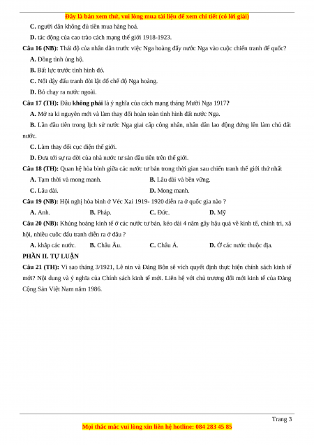 Câu 6 (VDC): Ngày nay, ngày kỉ niệm Cách mạng xã hội chủ nghĩa tháng Mười Nga được lấy là ngày nào sau đây? A. 10-10. B. 24-10. C. 25-10. D. 7-11.