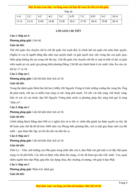 Câu 1 (VDC): Thể chế quân chủ chuyên chế có nghĩa là