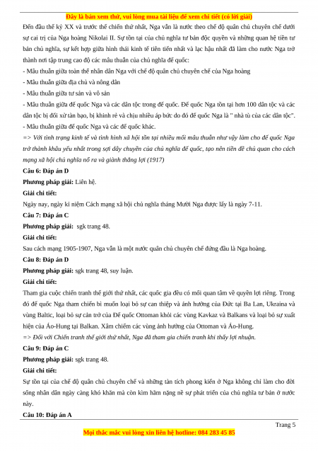Câu 5 (VD): Trong các tiền đề sau đây, tiền đề nào quan trọng nhất dẫn đến cách mạng bùng nổ và thắng lợi ở Nga năm 1917?