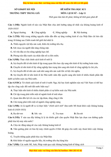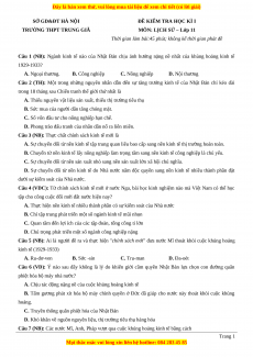 Đề thi cuối kì 1 Lịch sử 11 trường THPT Trung Giã - Hà Nội