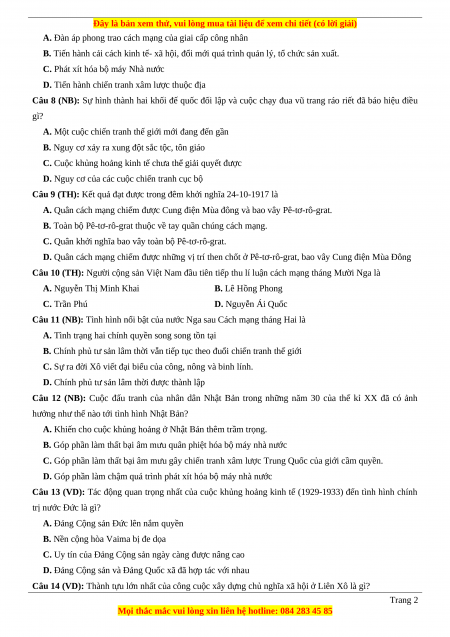 Câu 14 (VD): Thành tựu lớn nhất của công cuộc xây dựng chủ nghĩa xã hội ở Liên Xô là gì? Trang 2