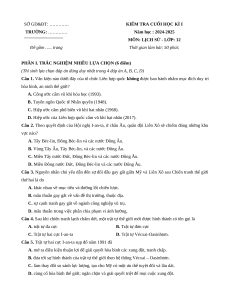 MÔN: LỊCH SỬ - LỚP: 12 Đề gồm ….. trang