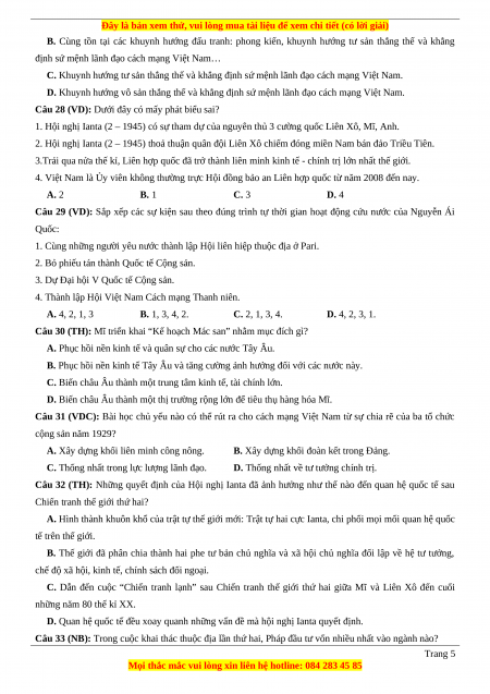 Câu 14 (TH): Nguyên nhân sâu xa dẫn đến Mĩ và Liên Xô chuyển sang thế đối đầu sau Chiến tranh thế giới thứ hai là do Trang 2