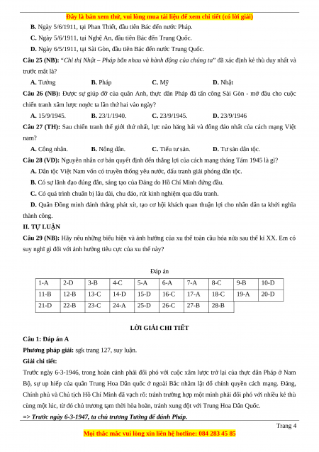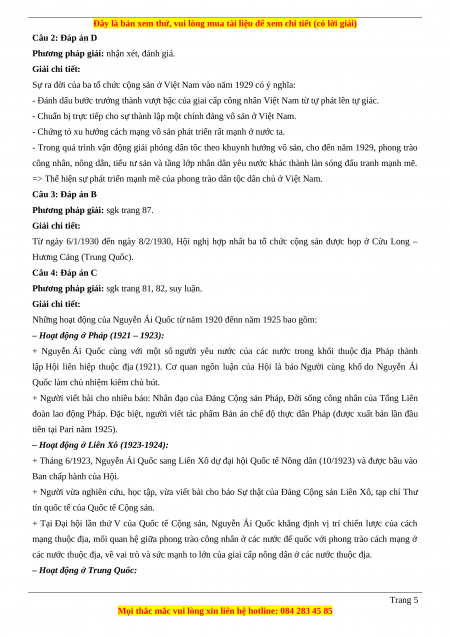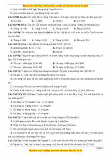 Câu 11 (NB): Vào thời gian nào Nguyễn Ái Quốc rời Pari đi Liên xô – đất nước mà từ lâu Người mơ ước đặt chân đến? A. Tháng 6/1924 B. Tháng 6/1923 C. Tháng 12/1923 D. Tháng 6/1922.
