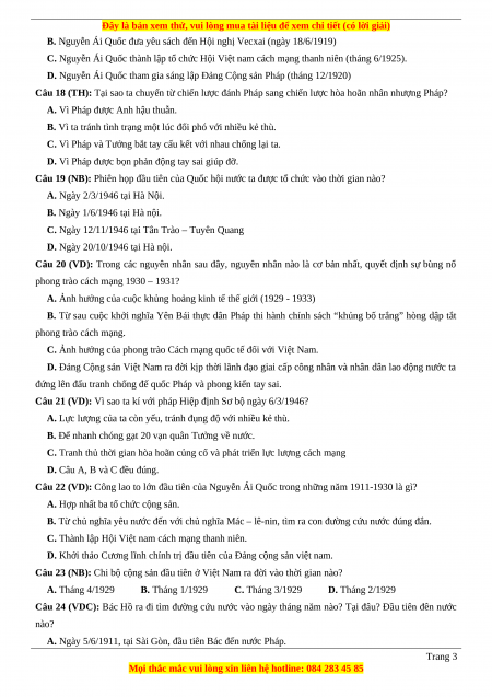 Câu 23 (NB): Chi bộ cộng sản đầu tiên ở Việt Nam ra đời vào thời gian nào? A. Tháng 4/1929 B. Tháng 1/1929 C. Tháng 3/1929 D. Tháng 2/1929