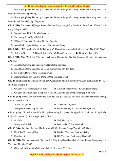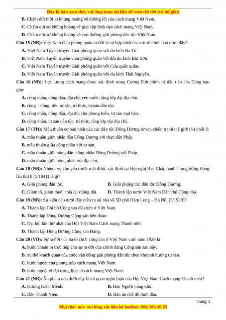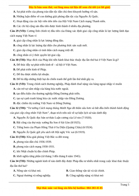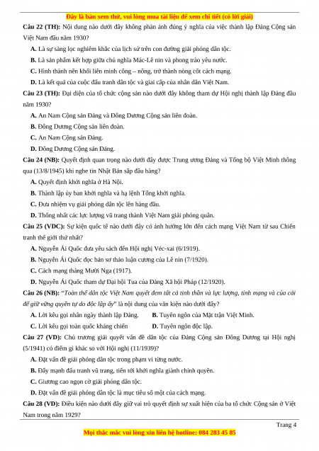 Câu 28 (VD): Điều kiện nào dưới đây giữ vai trò quyết định sự xuất hiện của ba tổ chức Cộng sản ở Việt Nam trong năm 1929? Trang 4