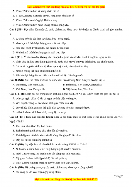 Câu 7 (TH): Tại sao các Zaibatsu ở Nhật bị giải tán? Trang 1