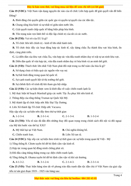 Câu 24 (VDC): Sắp xếp các sự kiện theo trình tự thời gian các sự kiện trong quan hệ Việt - Mỹ
